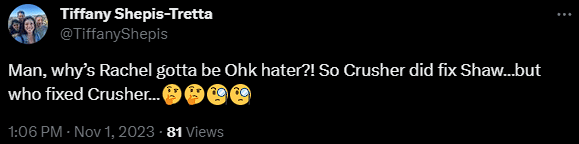 She loves to teach The Next Generation or help colleagues how to better themselves and grow in a way they never knew they could. One thing that Beverly probably missed during her 20 years out of Starfleet. Even though She and Dr. Ohk (the CMO of The Titan) didn’t exactly get along in the beginning, they put their differences aside to do the greater good and Ohk learned from Beverly during that time. To say that Ohk should step aside for Beverly to take over is not only right for Beverly but is not right for Dr. Ohk. Just because Beverly is an amazing doctor, doesn't mean other characters aren't. Something the actress who played Dr. Ohk (Tiffany Shepis-Tretta) pointed out on Twitter X: